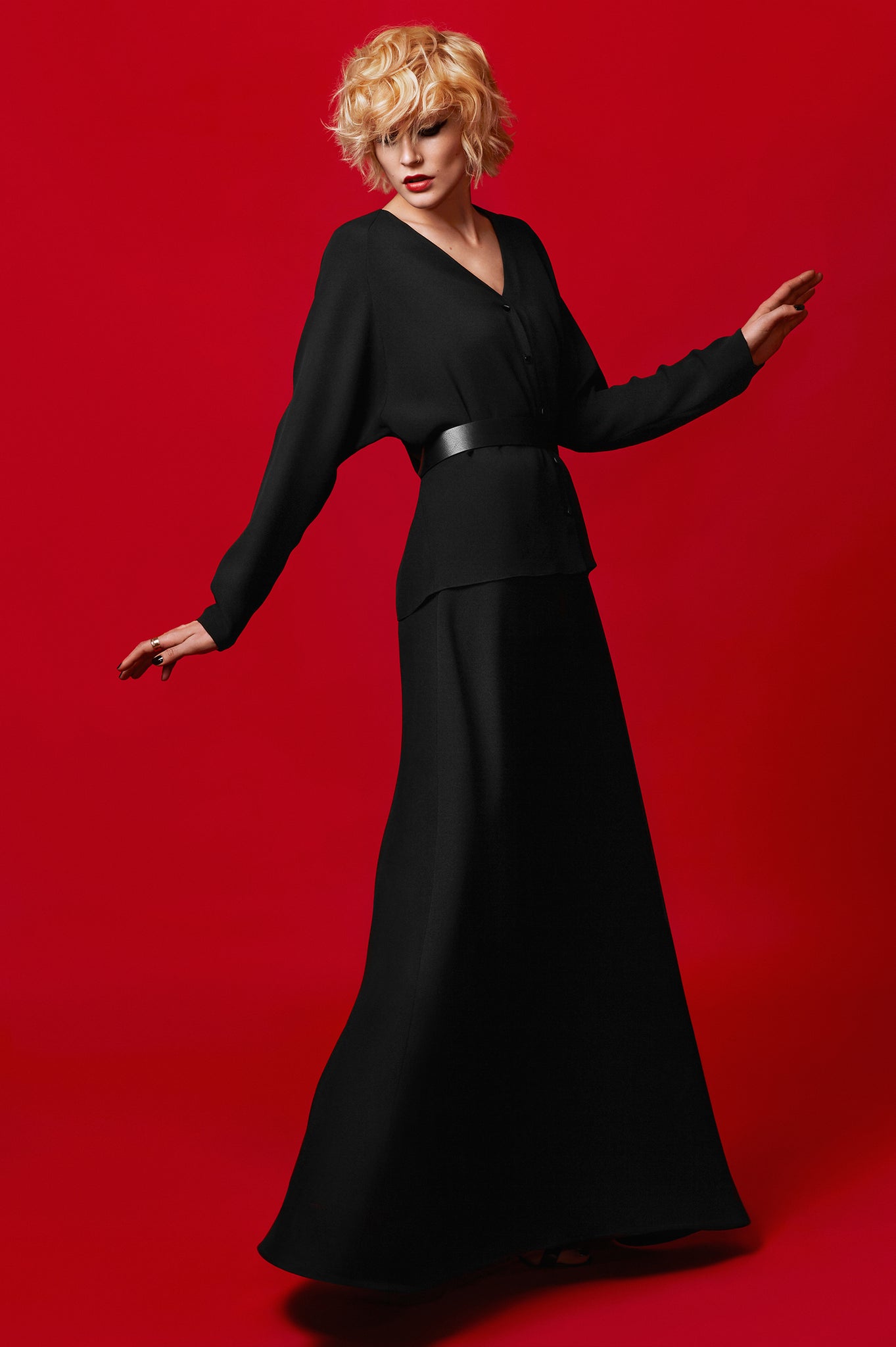 Bell-shaped maxi skirt made with heavy silk jersey.